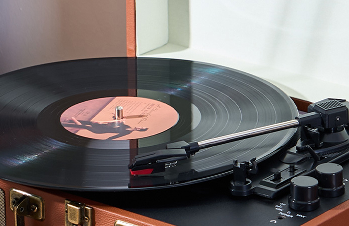 Ervaar pure analoge warmte met onze 3-snelheden platenspeler. Uitgerust met een rubine naald-element en anti-vibratie motorsysteem.